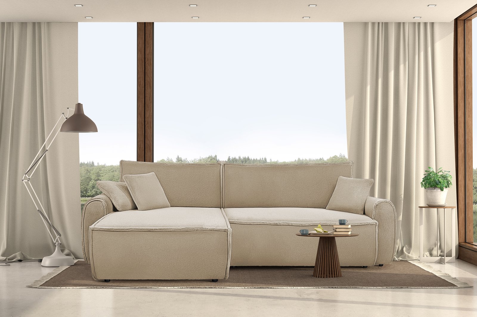 Moderni „Nizza“ kampinė sofa su miegama funkcija, erdvia lounge zona ir pasirenkama ottomanės puse – tai komforto ir elegancijos derinys šiuolaikiniams namams. Apvalios formos ir subtilūs akcentai sukuria prabangos pojūtį net kompaktiškose erdvėse.