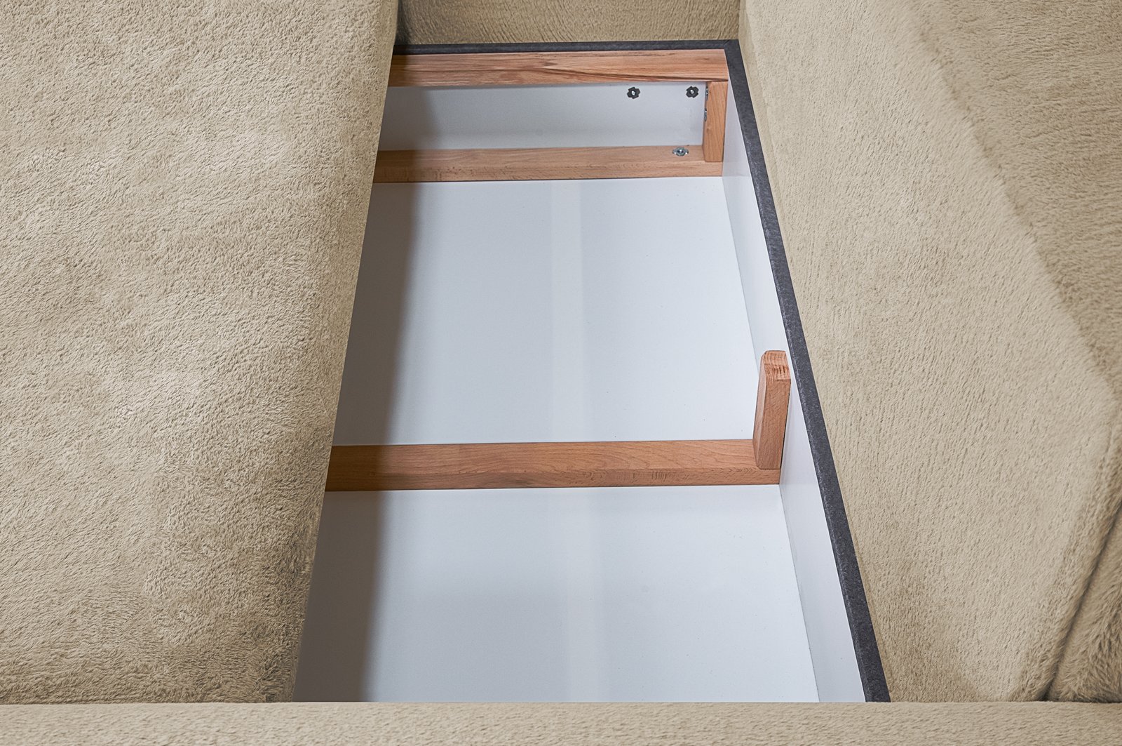 - Aukštos kokybės audinys „Lapit 29“: natūrali tekstūra, švelni smėlio spalva, atsparus dėvėjimuisi (60 000 Martindale).