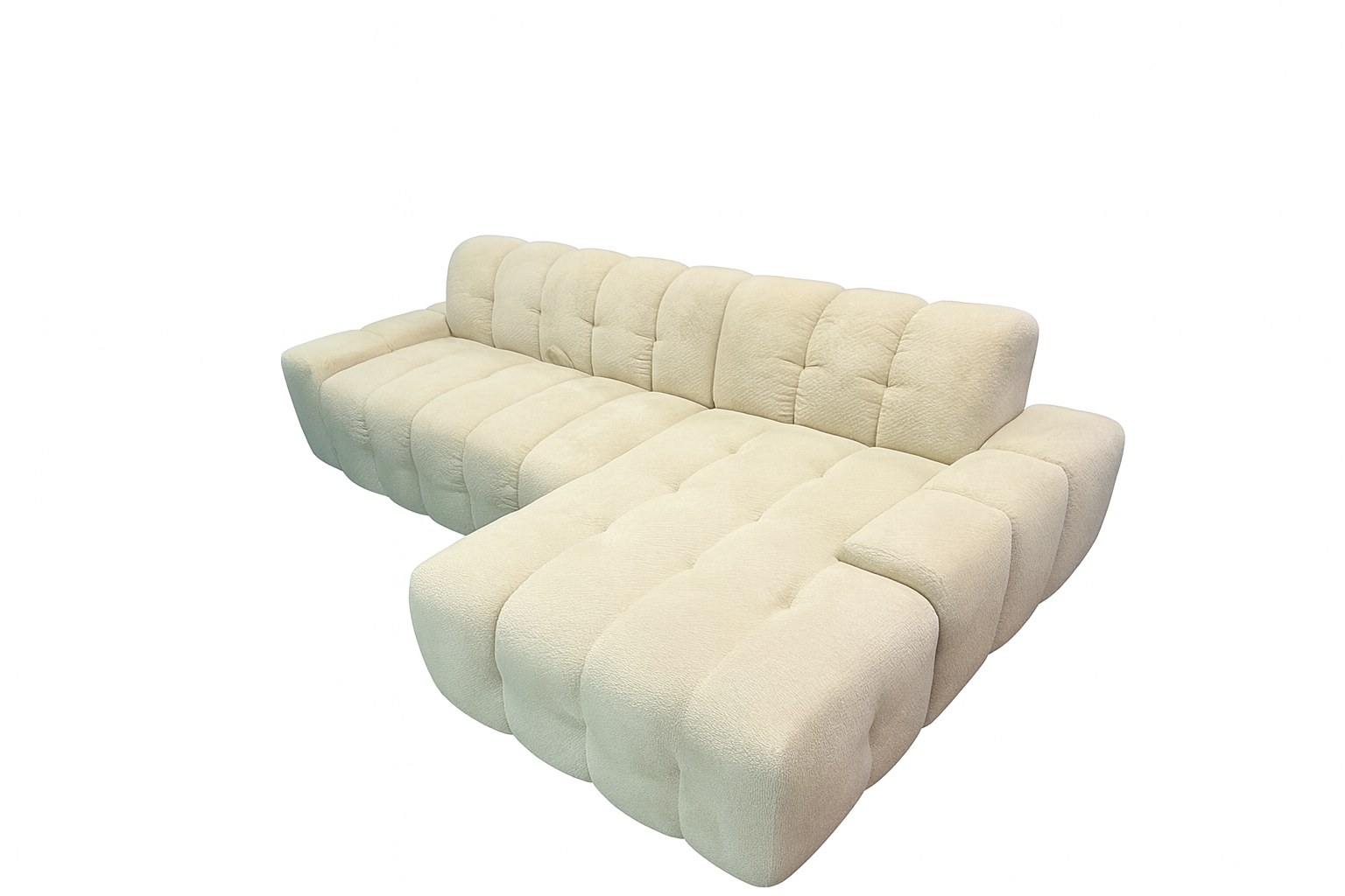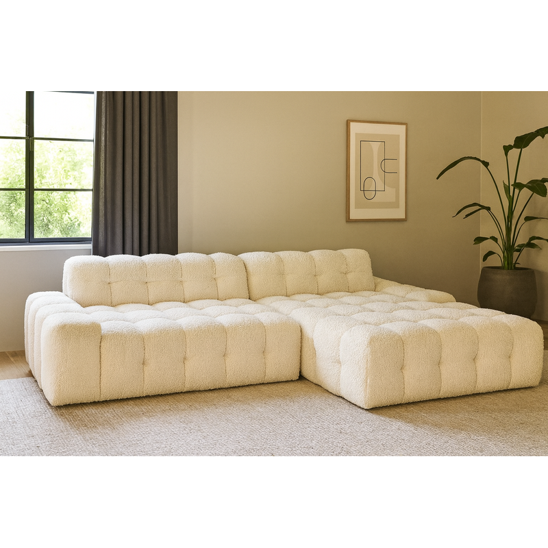 „Cloud“ – tai minimalistinio stiliaus kampinė sofa, kuri sujungia šiuolaikinį dizainą, maksimalų komfortą ir praktiškumą. Aksominė tekstūra, minkšti kvadratiniai segmentai ir žemi profiliai suteikia sofai išskirtinį vizualinį lengvumą bei jaukumą kiekviename kambaryje.