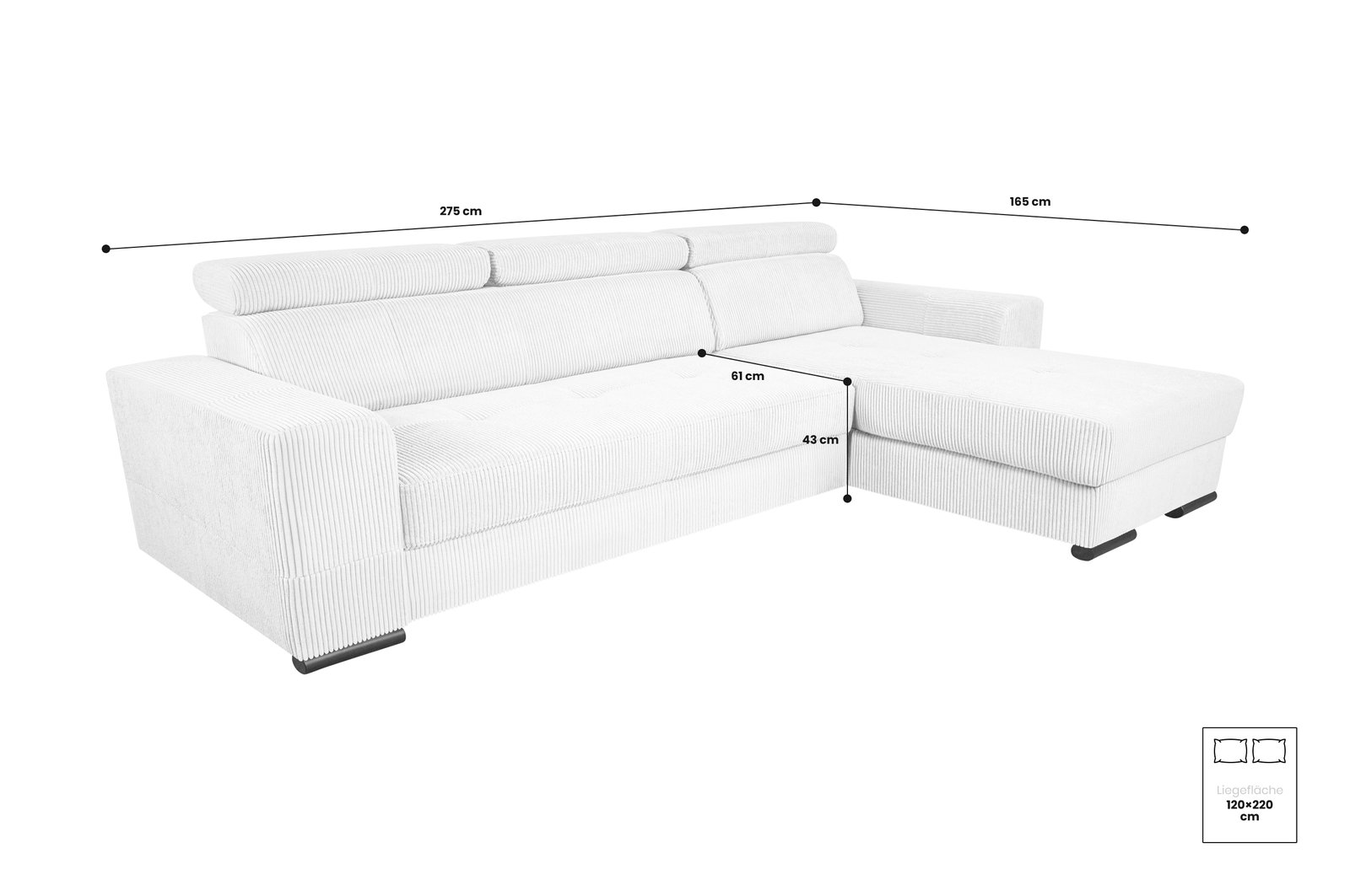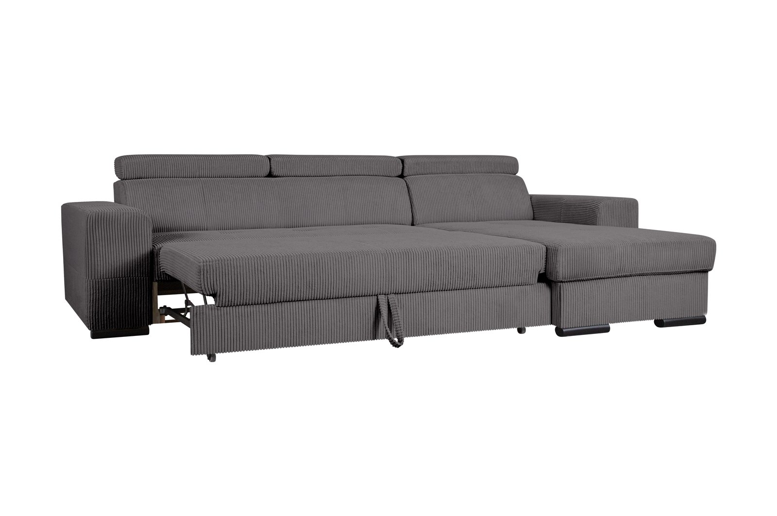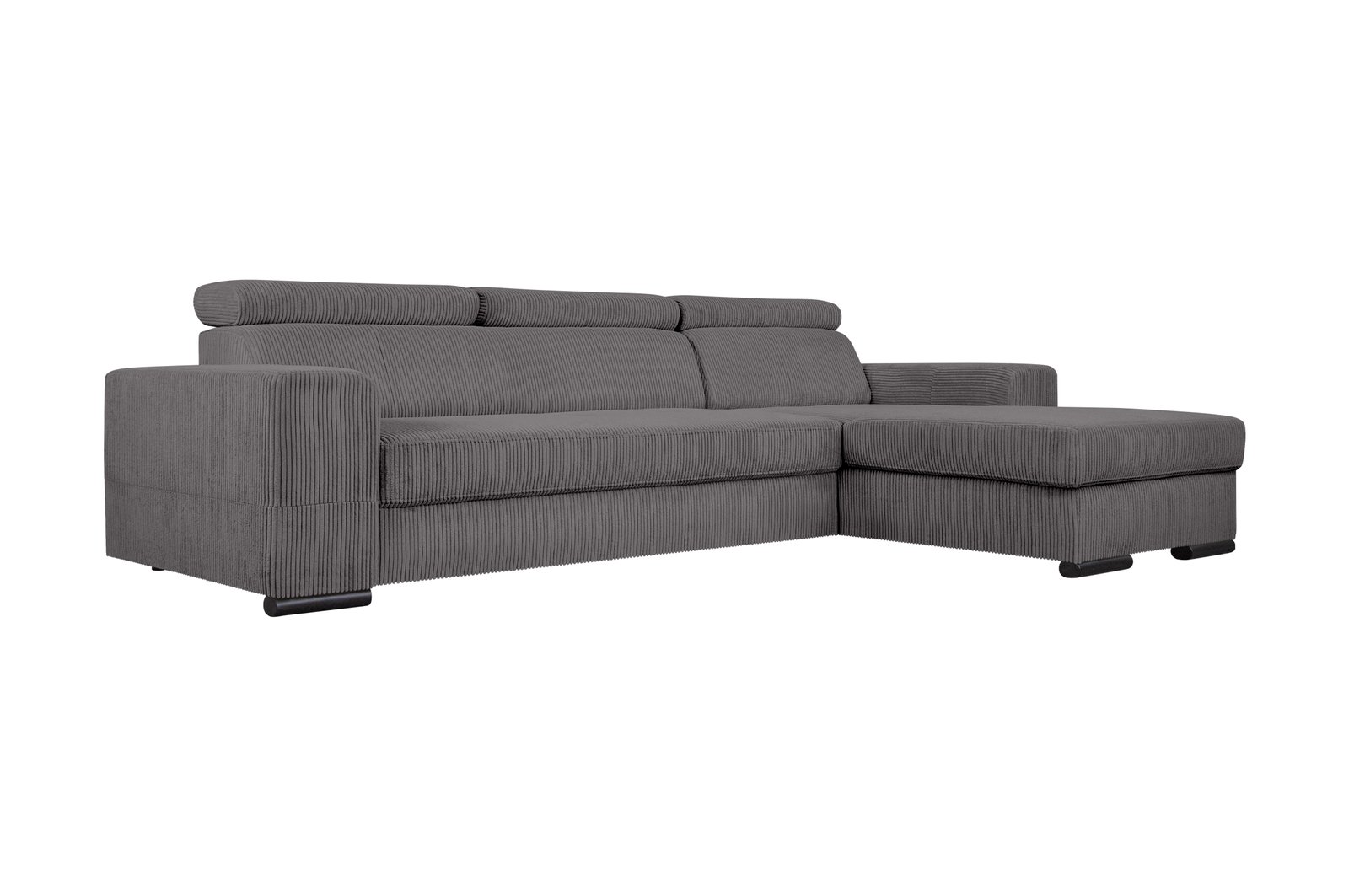 Šiuolaikiška kampinė sofa su integruotu miegamuoju mechanizmu, talpia daiktadėže ir reguliuojamais galvos atlošais – idealus pasirinkimas tiek kasdieniam poilsiui, tiek netikėtiems svečiams. Pasirinkimas tarp Lincoln veliūro ar Poso struktūrinio audinio leidžia pritaikyti sofą prie jūsų interjero stiliaus.