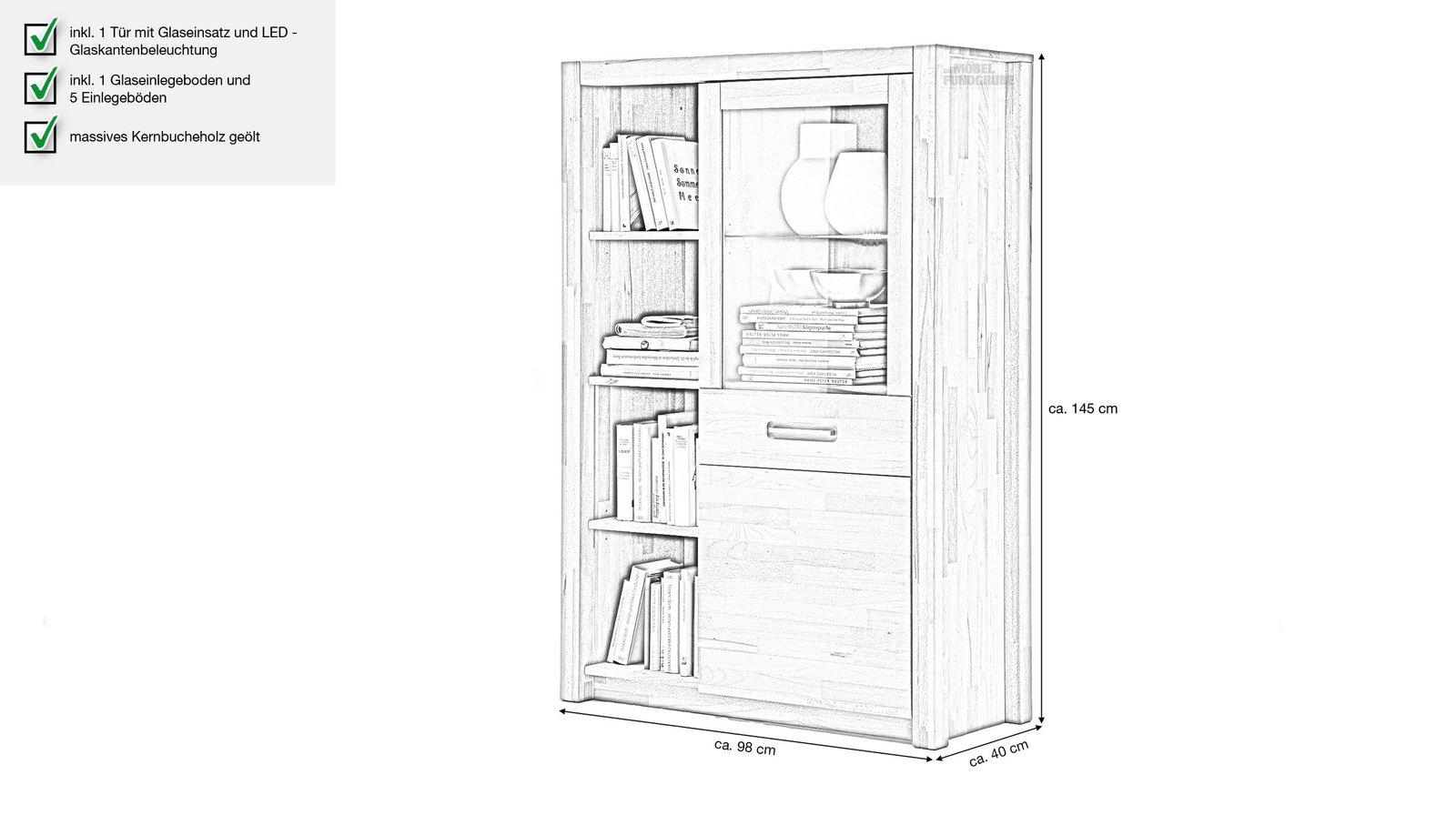Klasikinio dizaino „FENJA“ komoda pagaminta iš aukščiausios kokybės masyvios branduolinės buko medienos, su alyvuota apdaila ir LED apšvietimu. Tai baldas, kuris išryškina natūralią medienos tekstūrą ir suteikia namams šilumos bei išskirtinumo. Tvirtas, funkcionalus ir vizualiai išraiškingas – kiekvienas baldas yra unikalus dėl savo natūralių raštų.